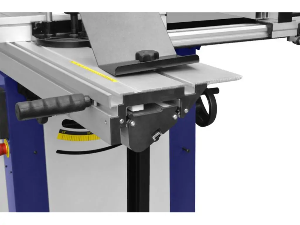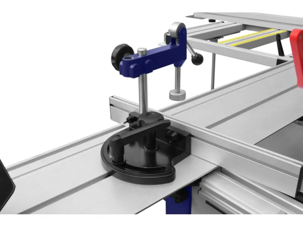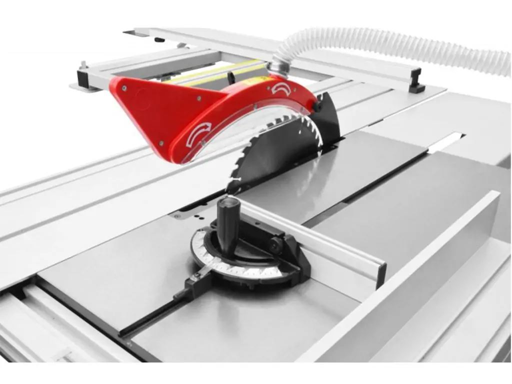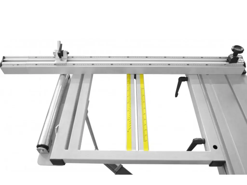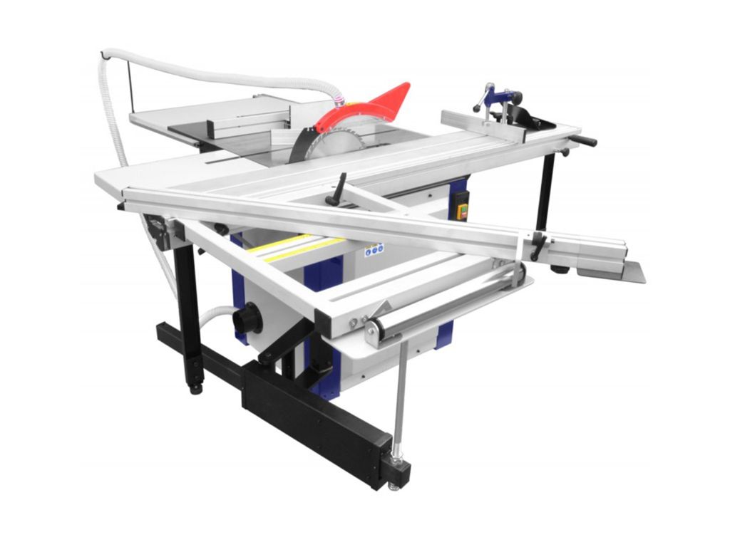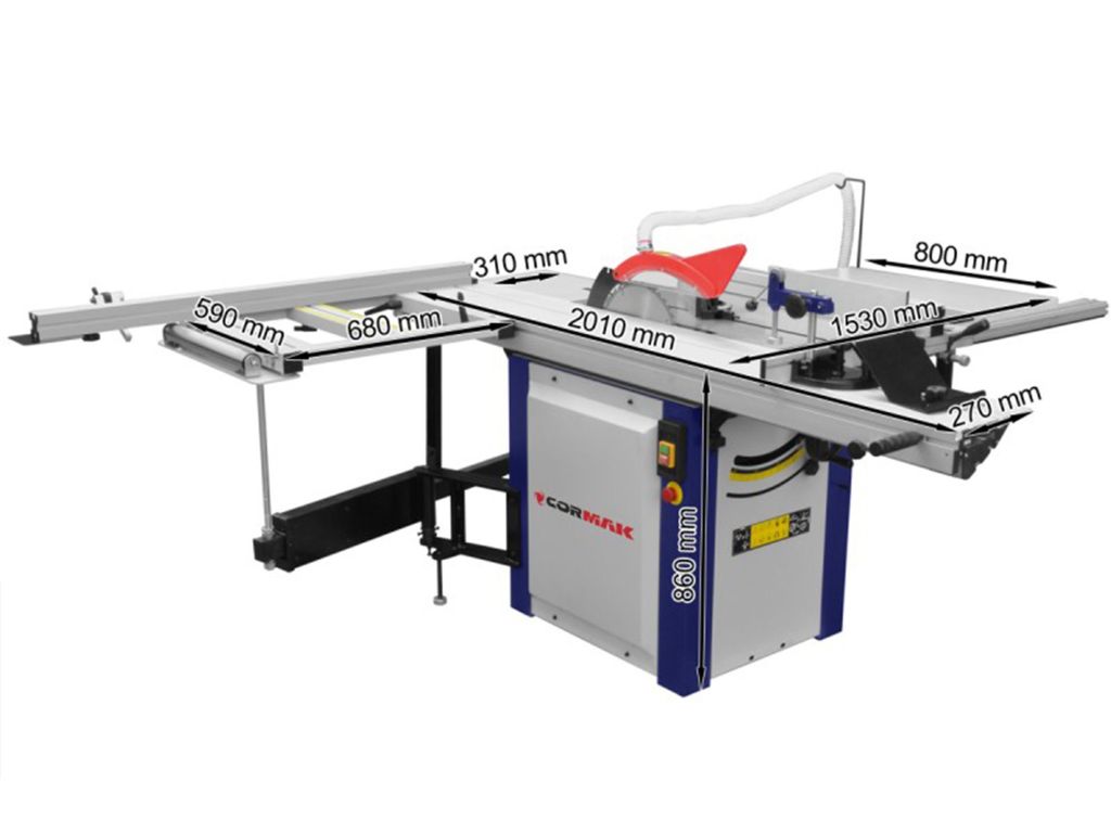 Пила форматно-розкрійного верстата встановлена на шпинделі, який має можливість налагодження повороту щодо робочого столу, сталевий, зручний корпус верстата зі столом з литого чавуну і з пересувним алюмінієвим столом, виготовленим з профільного алюмінію підвищеної міцності - стіл верстата є дуже міцним і стійким до перекручувань.