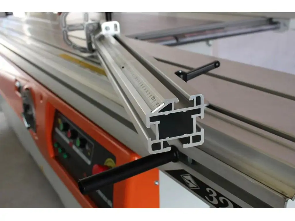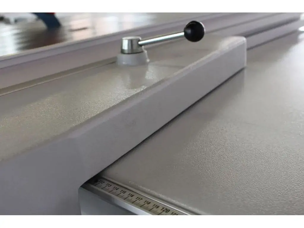 ТЕЛЕСКОПІЧНА УПОРНА ЛІНІЙКА Поперечна лінійка виготовлена з алюмінієвого профілю великого перерізу. Володіє високою підвищеною жорсткістю і опором до зношування. Розширювальний стіл великого формату має західний ролик для зручності завантаження і вивантаження листів матеріалу без пошкодження поверхні. |