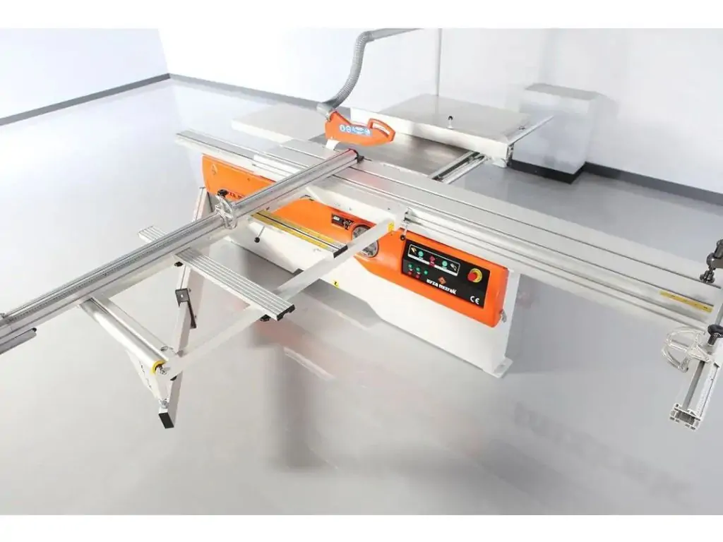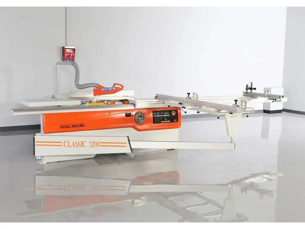 Форматно-розкрійний верстат Ayza Mizrak 3200 CLASSIC призначений для поздовжнього, поперечного і кутового розкрою плитних матеріалів (МДФ, ДВП, ДСП і клеєних щитів) облицювальних і ламінованих, з попереднім підрізом нижньої кромки для попередження відколів та розпилу масиву деревини з великою висотою пропилу.