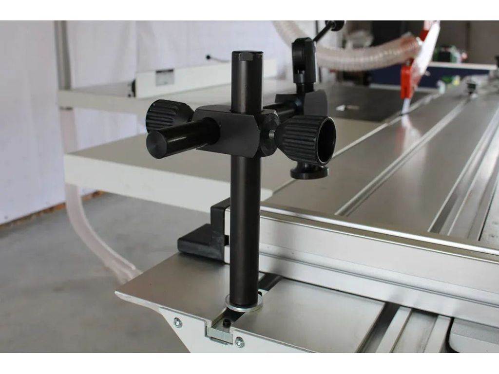 ДОДАТКОВА ЛІНІЙКА Для кутових різів в базову комплектацію верстата входить кутова лінійка, яка поставляється разом з ексцентриковим притиском. Ексцентриковий притиск встановлений поряд з поперечною лінійкою. |