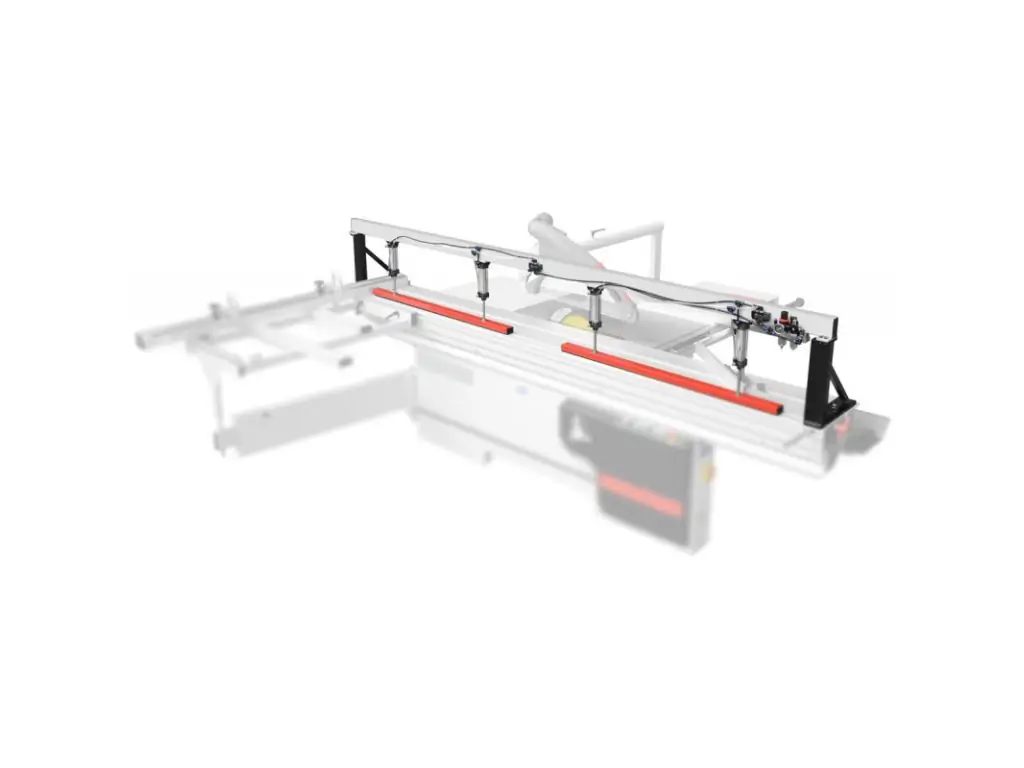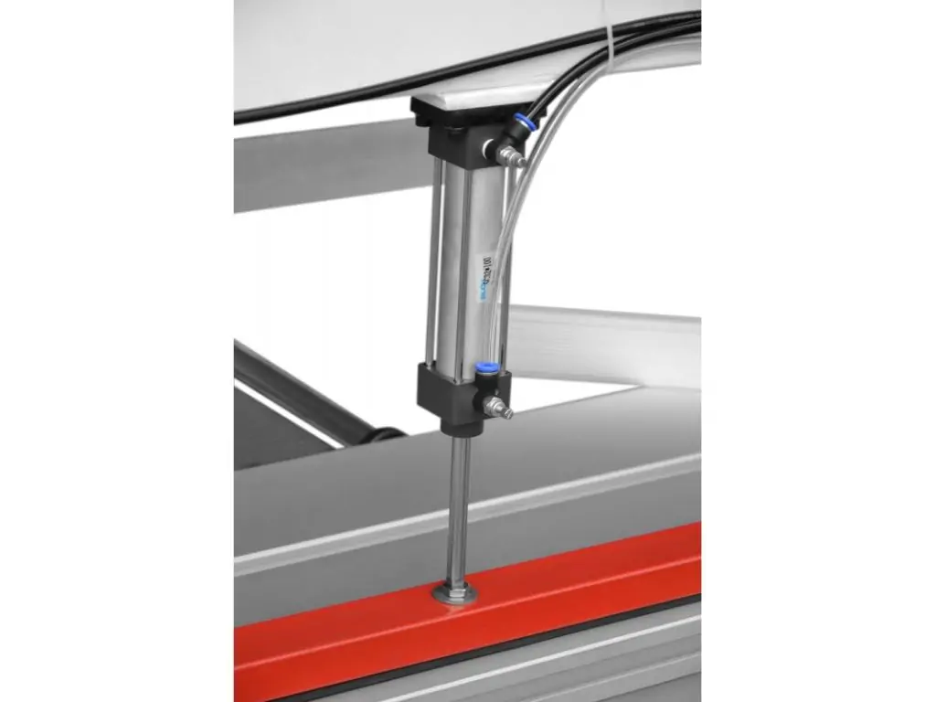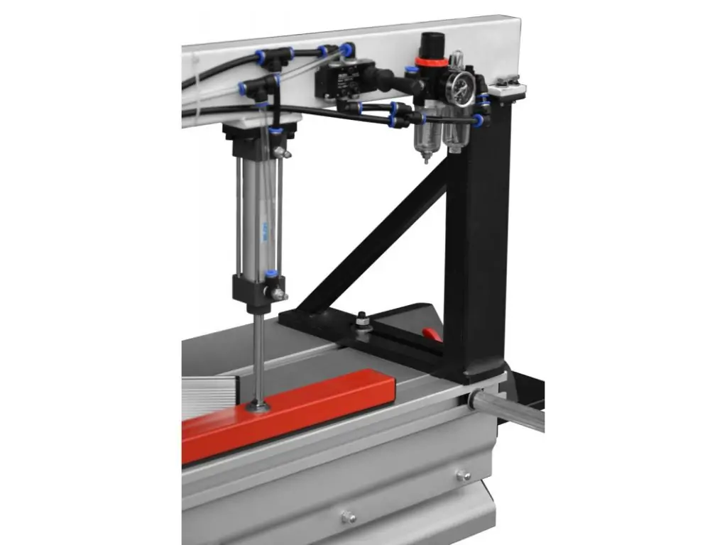 Пневматичний затискач забезпечує точне кріплення матеріалу, що розрізається з пильним столом. В результаті підвищується точність і якість розрізу, що прискорює і полегшує різання пластини. Затискач дуже простий у збиранні та використанні.