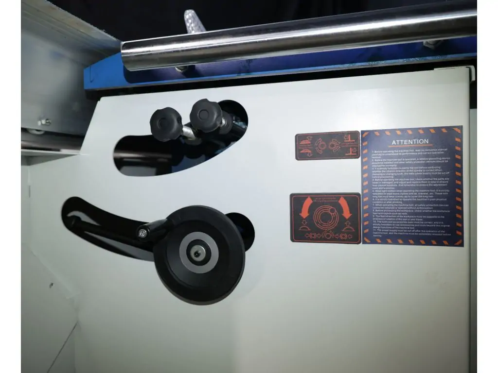 - Точне регулювання підрізної пили за допомогою спеціального маховика (принцип гвинт-гайка)