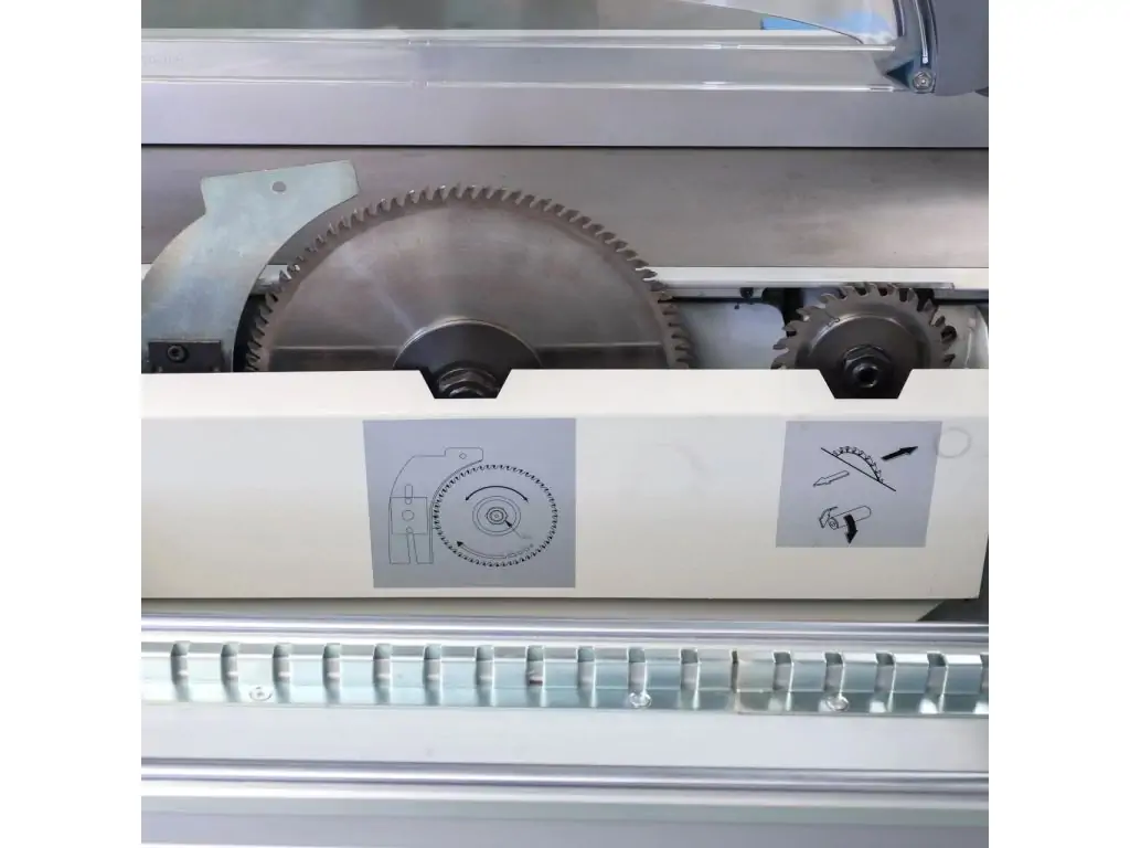 Перевагами моделі є поперечна лінійка з блоком електронної індикації та паралельний упор з механізмом точного підлаштовування і блоком електронної індикації. Великий опорний стіл 1250х550 мм і 2 додаткові столи (праворуч 1250х600 мм та на виході заготовки 720х630 мм) створюють велику робочу поверхню, що дає змогу якісно працювати з повноформатними листами. Увімкнення/вимкнення приводу пилок, регулювання кута нахилу, підйом і опускання пильного вузла здійснюються за допомогою пульта керування. Цей верстат для розкрою деревини оптимізує роботу виробництва і значно покращить його продуктивність.