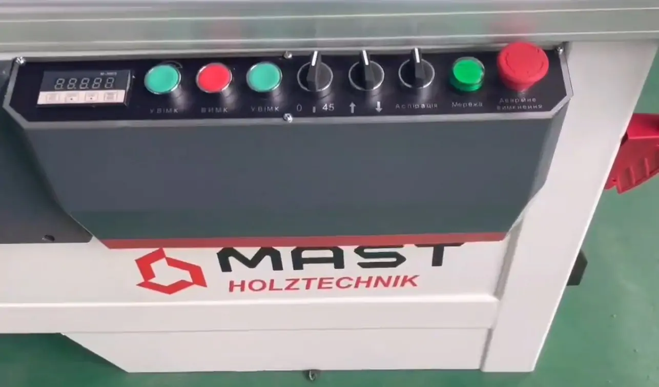 - Керування увімкненням/вимкненням приводу пил, кутом нахилу, підйомом і опусканням пильного вузла з пульта управління