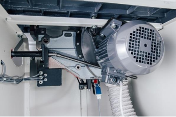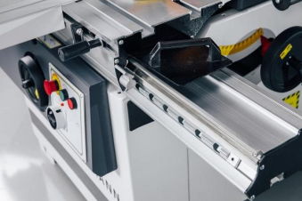 Верстат оснащений асинхронним двигуном потужністю 3 кВт/ 4 кВт, який підтримує стабільний крутний момент навіть при максимальному навантаженні. Каретка виготовлена з алюмінієвого профілю і переміщується по загартованих сталевих напрямних, що забезпечує плавність ходу і високу точність розкрою по всій довжині. Для підвищення точності і зручності різання цей форматний розкрійний верстат обладнаний паралельною лінійкою з мікрометричним налаштуванням та телескопічною лінійкою з двома відкидними упорами.