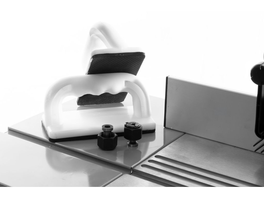 Завдяки компактній конструкції відмінно підходить для використання у приміщеннях з обмеженим робочим простором. Робочий стіл має розмір 610х360 мм, а розширення столу спереду і позаду дозволяють працювати з досить великими заготовками. Для максимальної точності різу верстат має паралельний і поворотний упори. Поставляється з 3 цангами різного діаметру. Щоб замовити деревообробний верстат Holzmann TFM 610V, переходьте в наш онлайн-магазин.