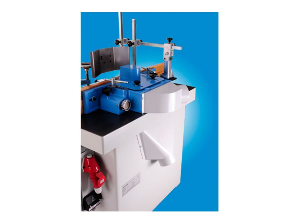 Верстат має масивний чавунний робочий стіл зі шліфованою поверхнею, непохитний фрезерний шпиндель, захисний кожух для профілювання, чотири швидкості обертання шпинделя, додатковий стіл, а також електромеханічну гальмівну систему.
