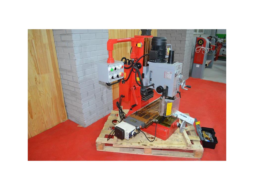 Фрезерний верстат Holzmann BF 50DIG - це професійне обладнання для обробки металу, яке застосовується для фрезерування, свердління, розгортання, зенкерування, нарізання різьби та ряду інших робіт. Оснащений витривалим 2-ступінчастим двигуном з 12-ступеневим регулюванням швидкості у 2 діапазонах - 75-1600 об/хв і 150-3200 об/хв. Легке переналаштування з горизонтальної роботи на вертикальну і навпаки, а також поворот вертикальної фрезерної головки від -90° до +90° дозволяють якісно виконувати завдання різної складності. Цифрова індикація по 3 осях підвищує точність обробки.