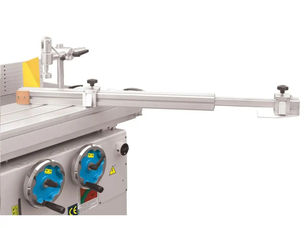 Телескопічна поворотна лінійка - це допоміжний вузол, який служить для точного ведення заготовки під заданим кутом до фрези. Дозволяє фіксувати і стабільно притискати деталь під будь-яким кутом (зазвичай у діапазоні ±45°).