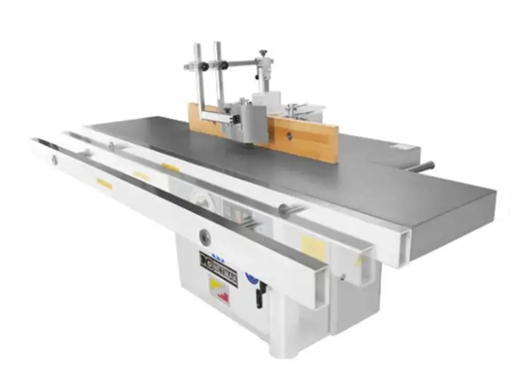 Верстат має масивний чавунний робочий стіл зі шліфованою поверхнею, непохитний фрезерний шпиндель, захисний кожух для профілювання, чотири швидкості обертання шпинделя, додатковий стіл, а також електромеханічну гальмівну систему.