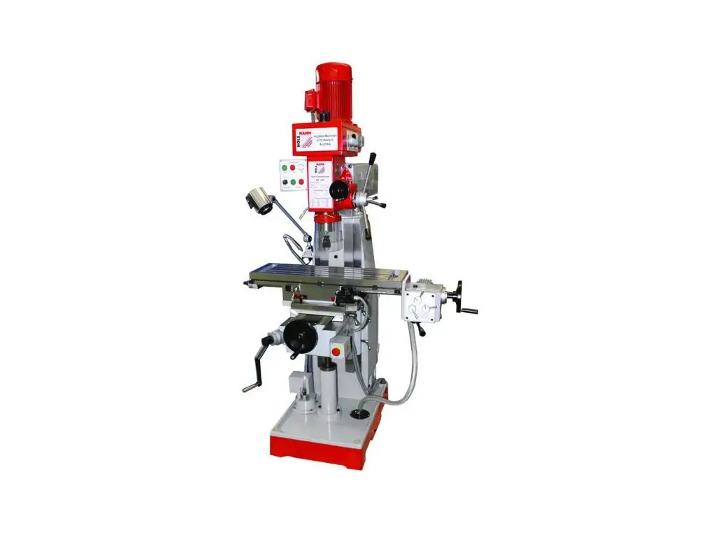 Універсальний вертикальний фрезерний верстат призначений для фрезерування поверхонь, нарізання різьби (правим і лівим ходом), свердління отворів в металі глибиною до 125 мм і діаметром до 50 мм. Це важка лита виброустойчивая конструкція з поворотною фрезерною головою на 90 градусів в обидві сторони. Лінійки можна регулювати по всіх осях.