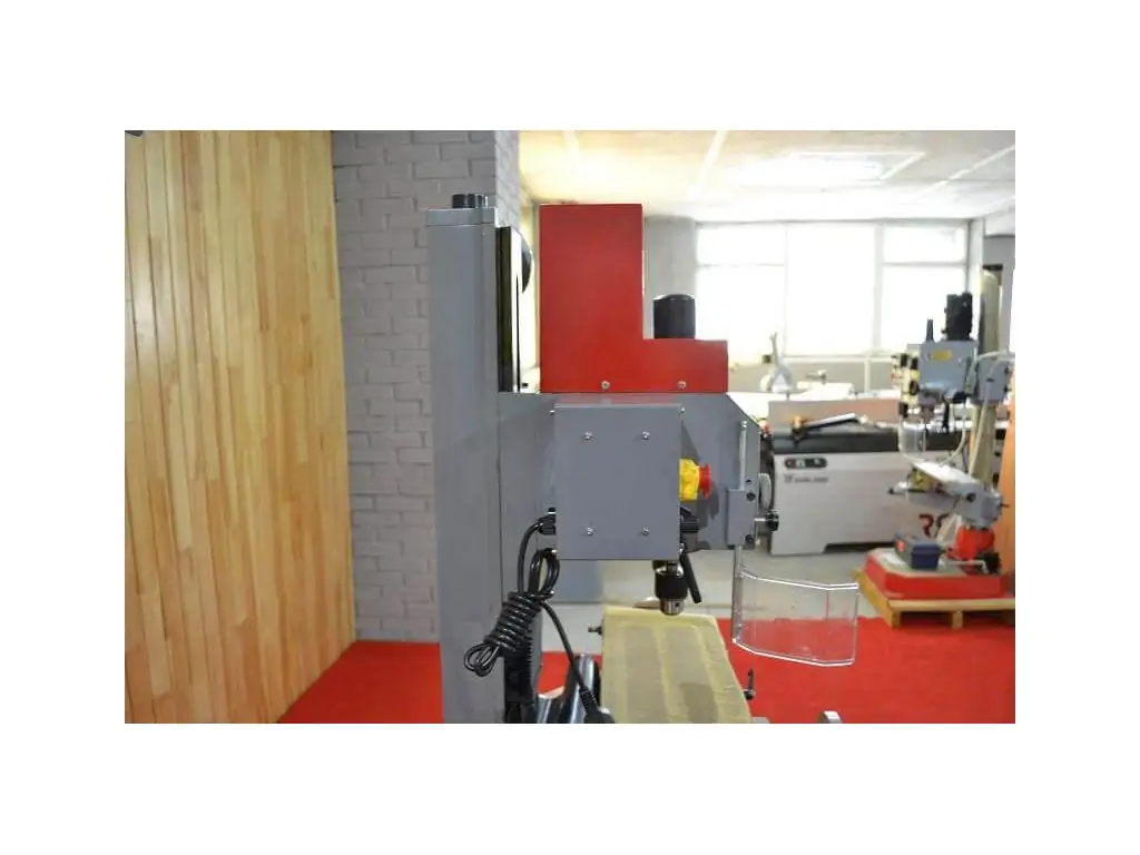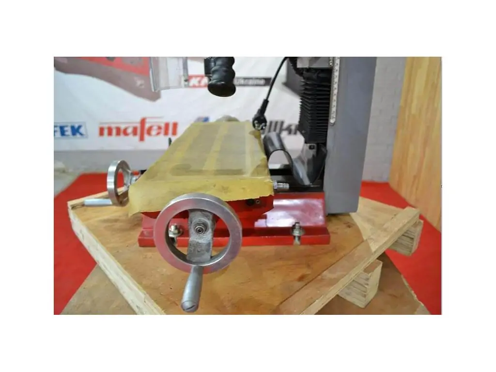 Поворотна фрезерна головка, плавне регулювання швидкості обертання шпинделя від 50 до 2250 об/хв і поперечний стіл 500х180 мм, на якому розміщена лінійка, гарантують точну та якісну обробку. Індикатори швидкості та глибини свердління дають змогу зручно контролювати процес роботи. Чавунна підставка забезпечує міцність і стійкість верстата, а компактний розмір і настільний тип дозволяють ефективно його використовувати у невеликих приміщеннях. Верстат відповідає стандартам безпеки ЄС.
