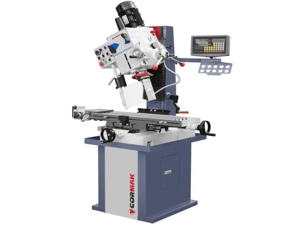 Компактний фрезерно-свердлильний верстат універсального застосування. Поворотна головка, конус шпинделя MK3. Цифровий дисплей показує швидкість шпинделя.