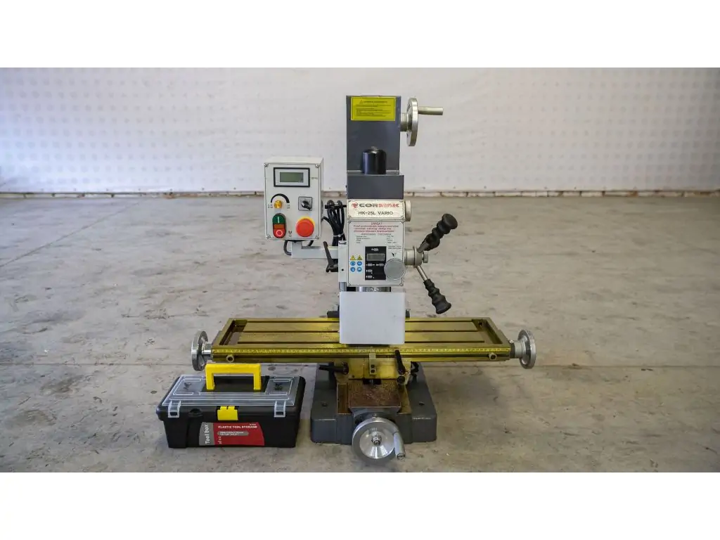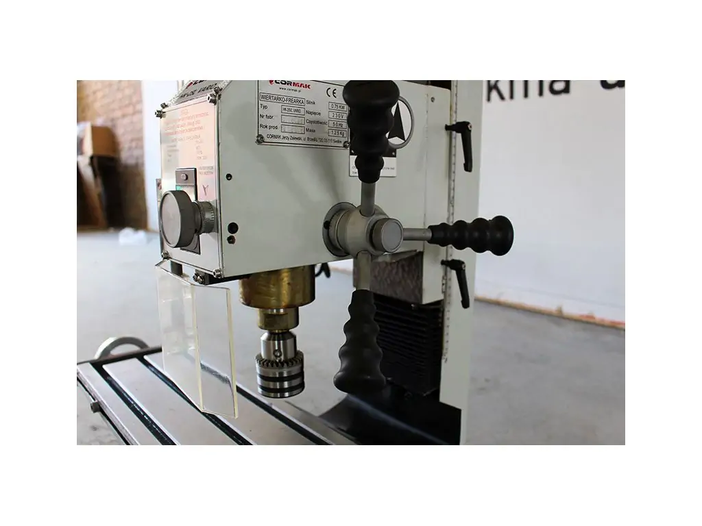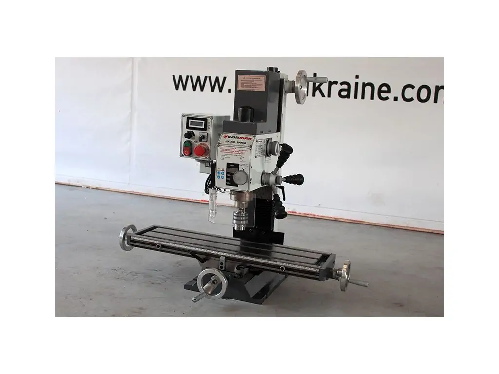 Компактний фрезерно-свердлильний верстат універсального застосування. Поворотна головка, конус шпинделя MK3. Цифровий дисплей показує швидкість шпинделя.