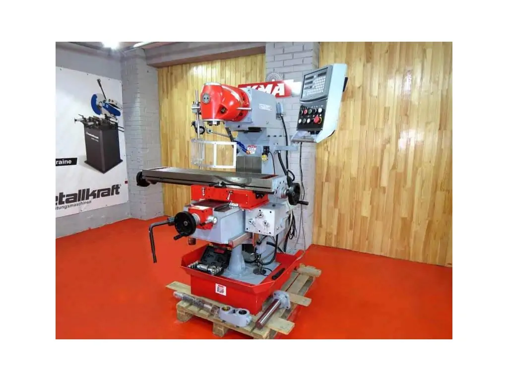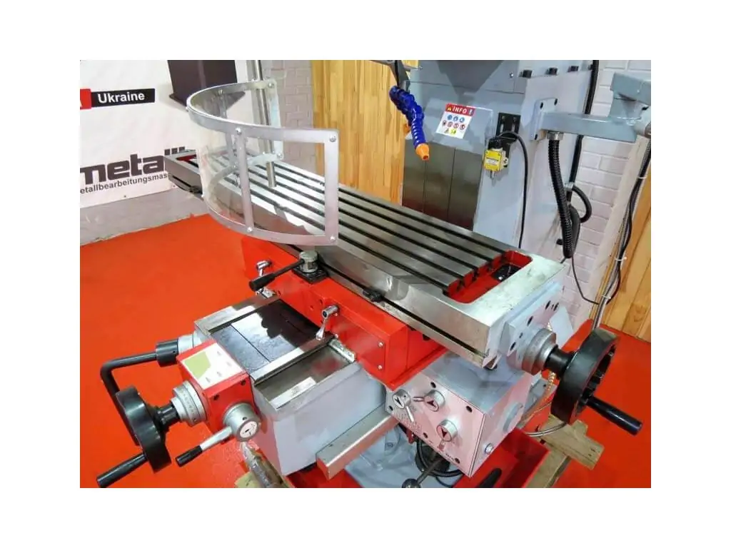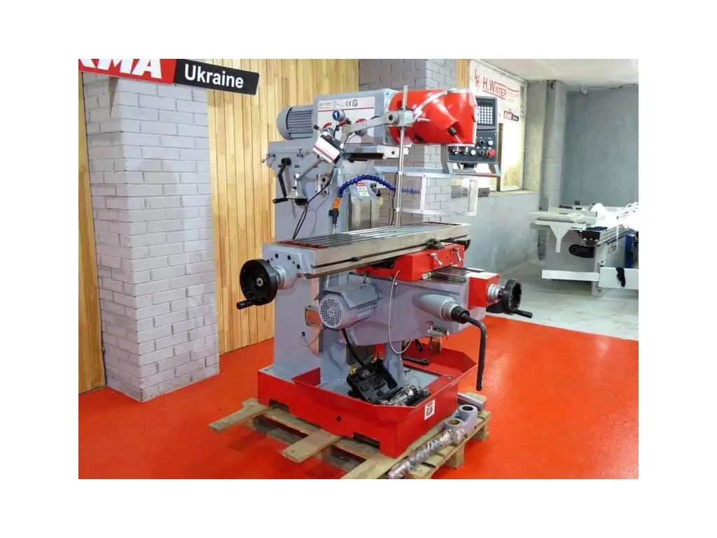 Масивна станина з сірого чавуну поглинає вібрації й забезпечує точність і стабільність роботи. Точний поперечний стіл з п’ятьма Т-подібними пазами має розмір 1270x260 мм і витримує значні навантаження, що дозволяє зручно працювати з важкими, габаритними заготовками. Всеракурсна універсальна фрезова головка дає змогу якісно працювати під різними кутами. Потужність двигуна 2,2 кВт і швидкість обертання шпинделя до 1600 об/хв забезпечують продуктивну роботу верстата на штучних і дрібносерійних виробництвах.