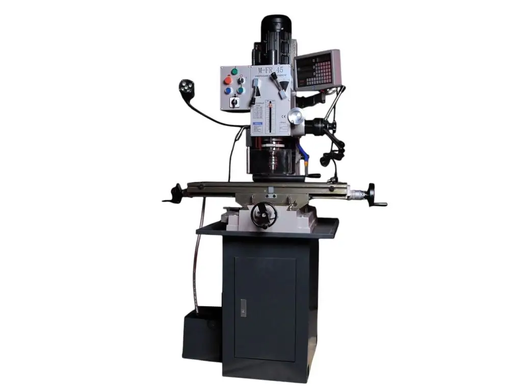 Фрезерно-свердлильний верстат MAST M-FR 45 - це універсальне обладнання для фрезерування, свердління, розсвердлювання, розточування, зенкування і нарізання різьби у металевих деталях. Потужність двигуна 1,5 кВт забезпечує продуктивну роботу з чорними і кольоровими металами, а регулювання швидкості обертання шпинделя у межах 80-1250 об/хв дозволяє встановити параметри обробки відповідно до особливостей матеріалу. Цифрова індикація по 3 осях забезпечує високу точність, повторюваність і контрольованість обробки.
