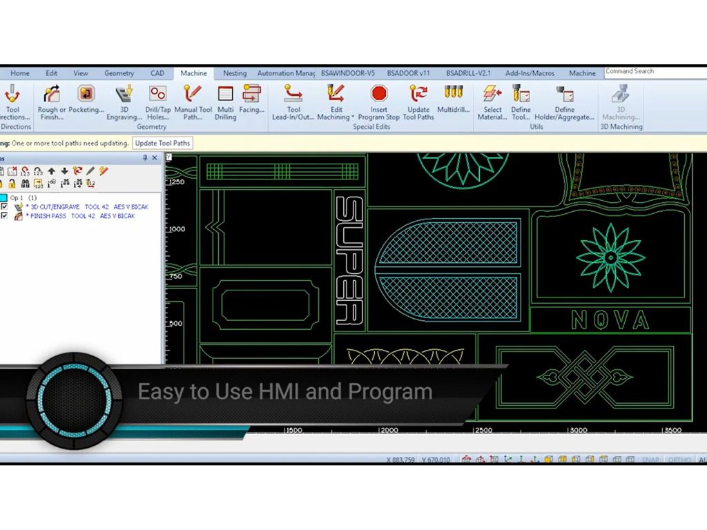 Super Nova забезпечує швидкий і точний різ для фрезерування початкового рівня. Крім тривимірної обробки поверхні і розкрою, можна обробляти різні типи матеріалів, такі як пластик, алюкобонд, алюміній, композит і т. д.
