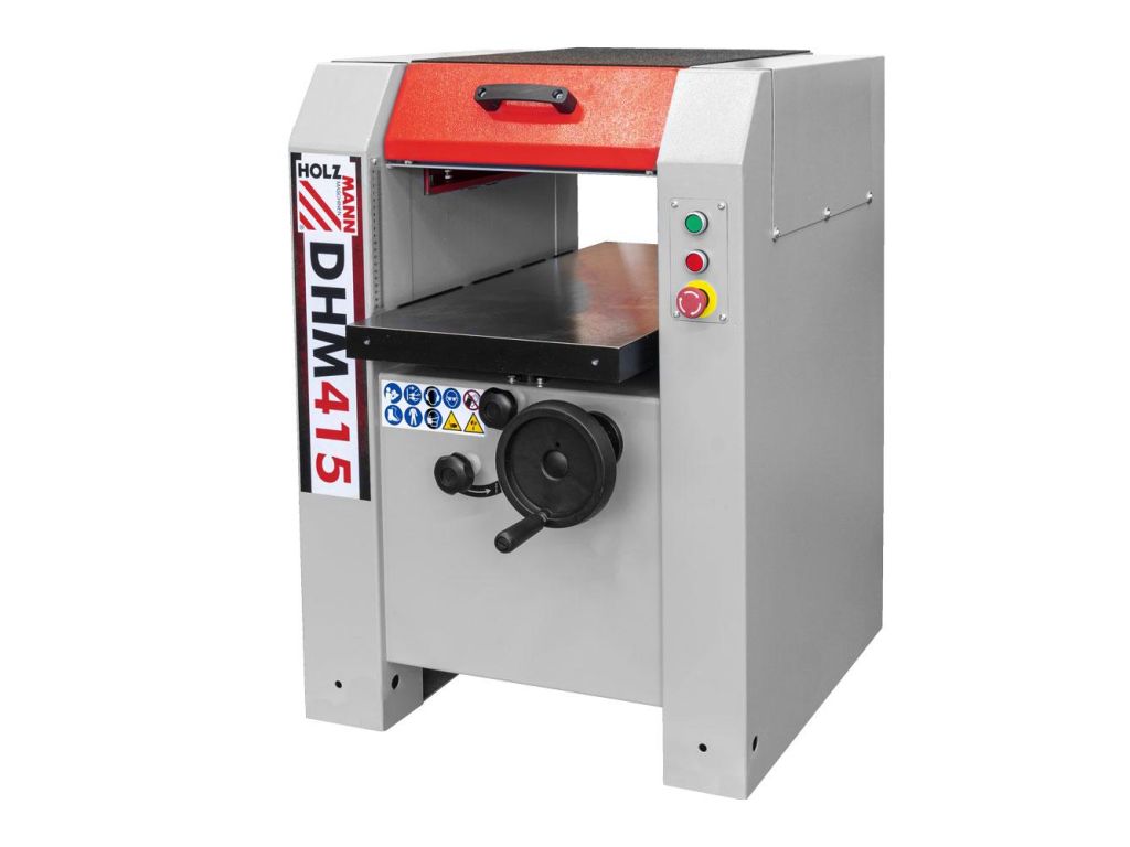Рейсмусовий верстат Holzmann DHM 415 ефективно виконує калібрування заготовок по товщині за допомогою прецизійного стругального валу з 3 високоякісними ножами. Швидкість обертання валу 4200 об/хв забезпечує високу якість обробленої поверхні, а трифазний двигун потужністю 3 кВт гарантує продуктивну роботу з усіма породами деревини. Максимальна глибина зняття за один прохід становить 5 мм, ширина обробки - 408 мм.
