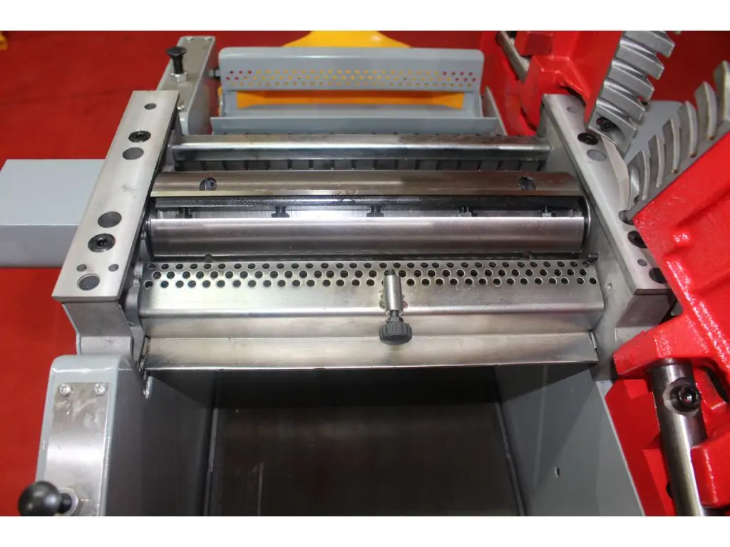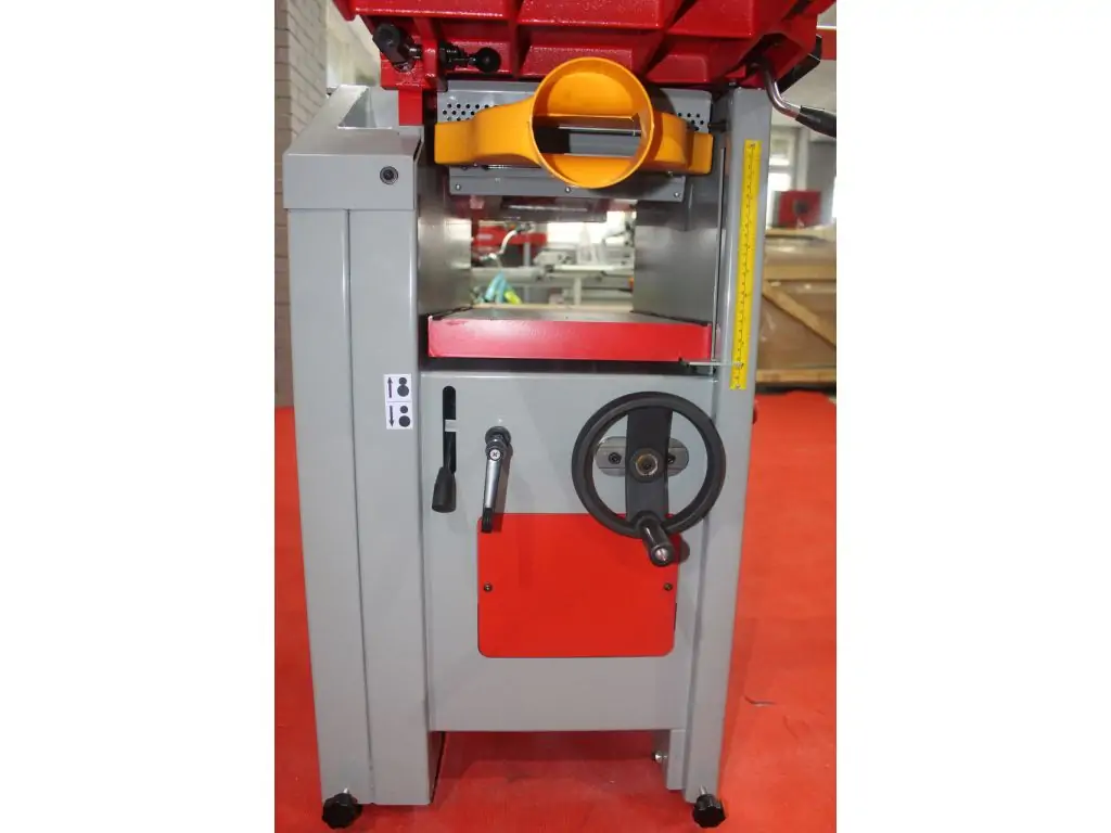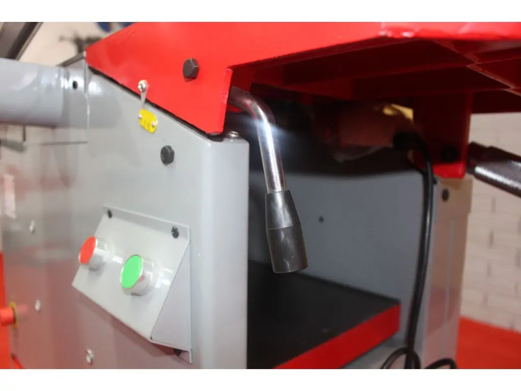 Швидке підняття столів дозволяє легко перейти від фуганка до рейсмуса. Висота столу плавно регулюється за допомогою важеля зі шкалою. Столи виконані з чавуну і мають відшліфовану поверхню для легкого ковзання заготовки. Подача автоматична, зі швидкістю 5,5 м/хв. Подача виконується за допомогою рифленого суцільного валу з косими насічками, що забезпечує її плавність і рівномірність. Такий комбінований фугувально-рейсмусовий верстат буде ідеальним вибором для невеликих майстерень і малих виробництв.