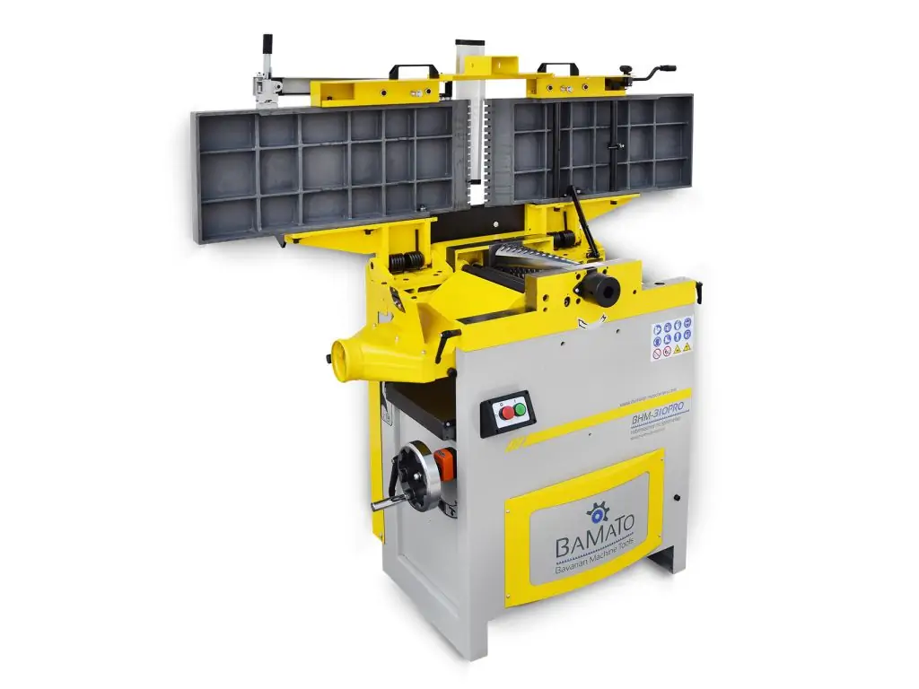 Ще одна перевага - стабільний та стійкий до крутіння стругальний стіл з сірого чавуну. Що стосується простоти використання, BHM-310PRO відрізняється строгими столами, які можна складати для економії місця, а також маховиком з дисплеєм для точного налаштування товщини столу.