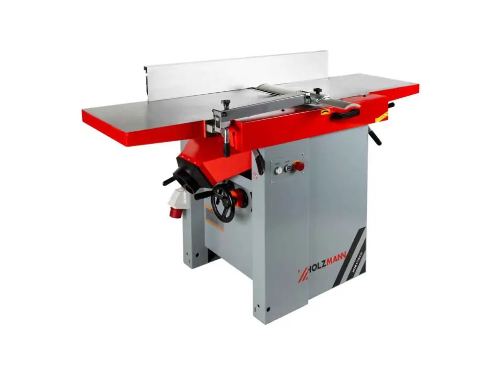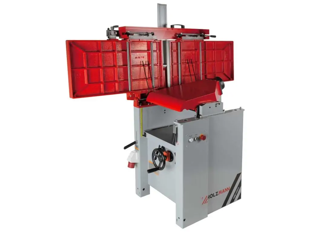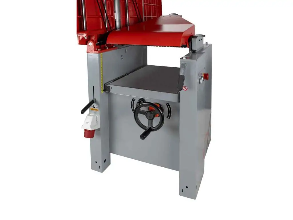 - Проста і швидка переналагодження для функції рейсмусовання - литі чавунні фугувальні столи відкидаються в сторони