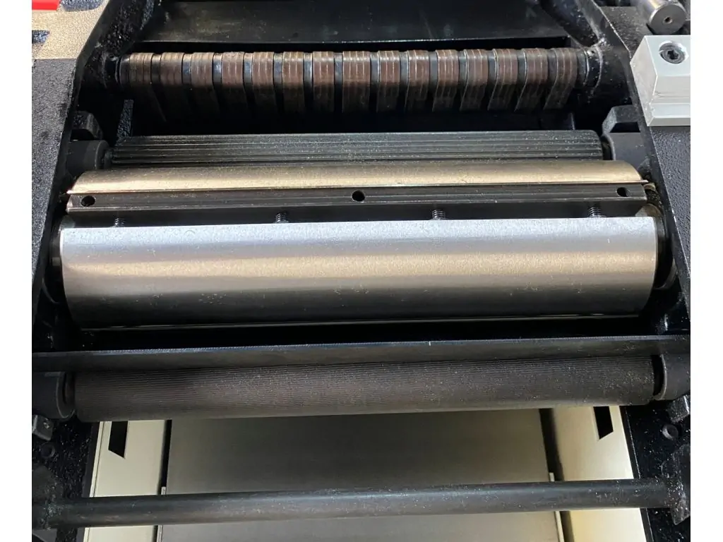 Стійка, міцна станина, чавунні столи і чітка шкала глибини забезпечують високу точність обробки. Стругальний вал оснащений 3 ножами і має великий діаметр, завдяки чому фугування відбувається з великою швидкістю. Перехід до рейсмуса здійснюється шляхом відкидання фугувального стола. Стіл для рейсмусування регулюється з обох боків і підтримується центральною колоною, що дає змогу досягти точного калібрування з двох сторін і працювати з важкими заготовками. Цей та інші комбіновані деревообробні верстати можна замовити на KMA.UA з доставкою по Україні.