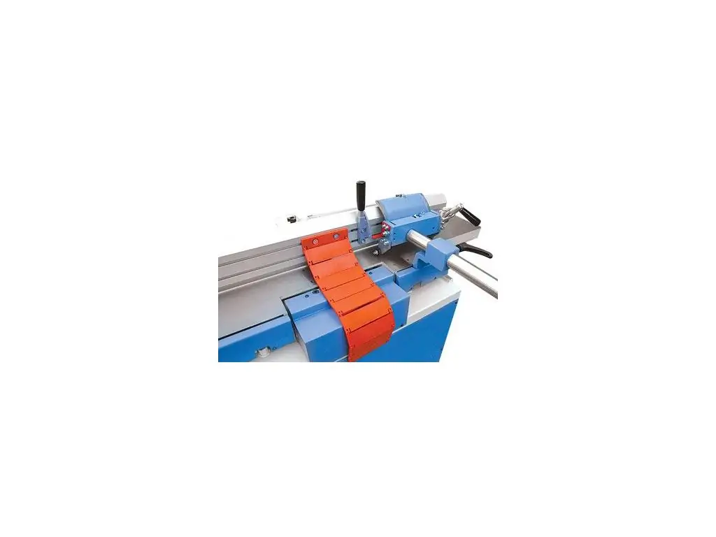 - Професійна лінійка, закріплена на кромці столу, яка рухається по циліндричній напрямній за допомогою роликів