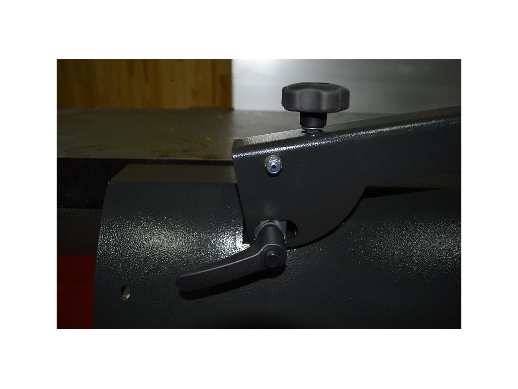 Два литих столу загальною довжиною 2360 мм і завширшки 410 мм з сірого чавуну з відшліфованою поверхнею сприяють легкому ковзанню заготовки, а також забезпечують стійкість і опір вібрації при роботі. Можливість регулювання обох столів дозволяють більш точно виставити.