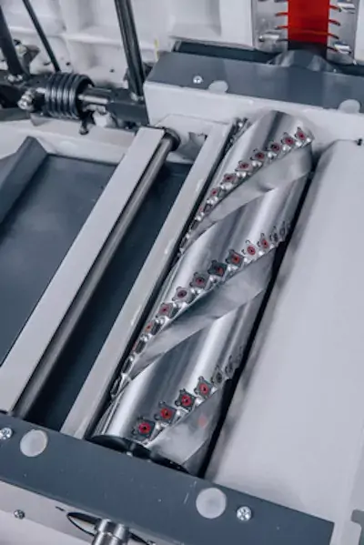 КРІПЛЕННЯ НОЖОВОГО ВАЛА Знаходиться в литому чавунному корпусі, в якому всі отвори посадки автоматично обробляються на фрезерному центрі з ЧПУ за один установ. Цим забезпечується відсутність найменших вібрацій і досягаються чудові результати фугування. |