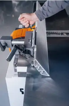 РЕГУЛЮВАННЯ СТОЛУ ВАЖЕЛЕМ Виставлення товщини знімання матеріалу зручно здійснюється важелем по лінійці. Знімання до 8 мм. Відображення товщини знімання за допомогою прапорця за шкалою |
