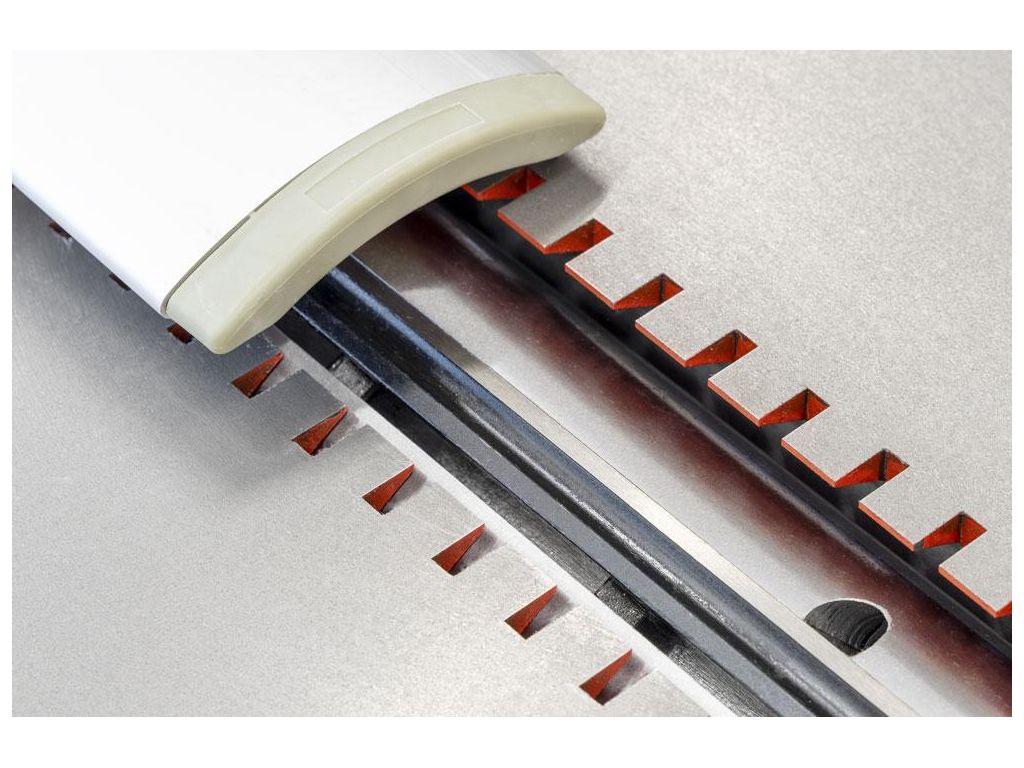 ![]() | НАПРАВЛЯЮЧА ЛІНІЙКА Чавунна направляюча лінійка легко переміщається по столу за допомогою коліс. |