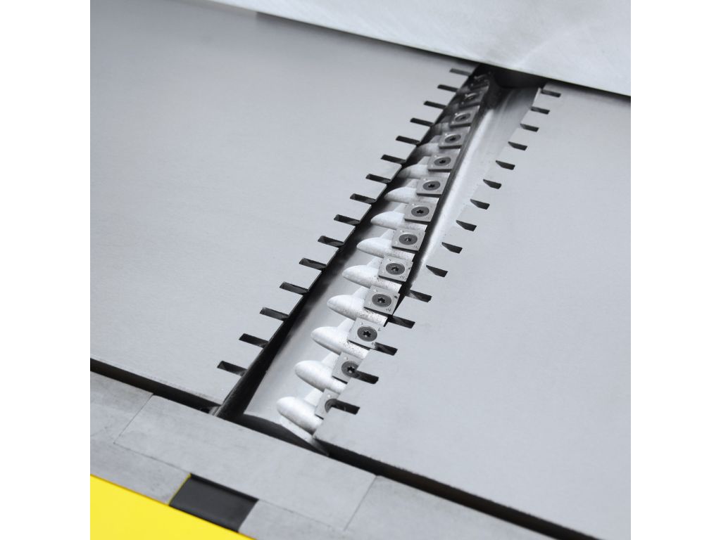 Спіральне розташування твердосплавних пластин зі змінними пластинами створює так званий протяжний різ з відмінним результатом стругання. Крім того, це зводить до мінімуму шум верстата під час використання (до 50%).