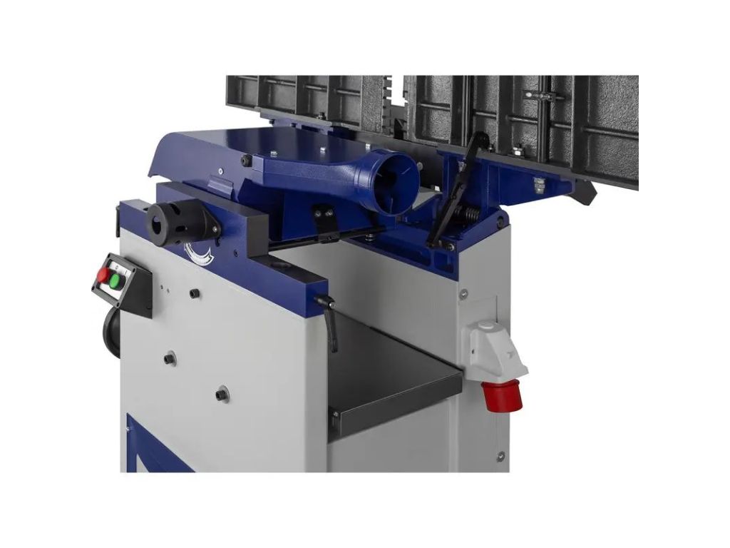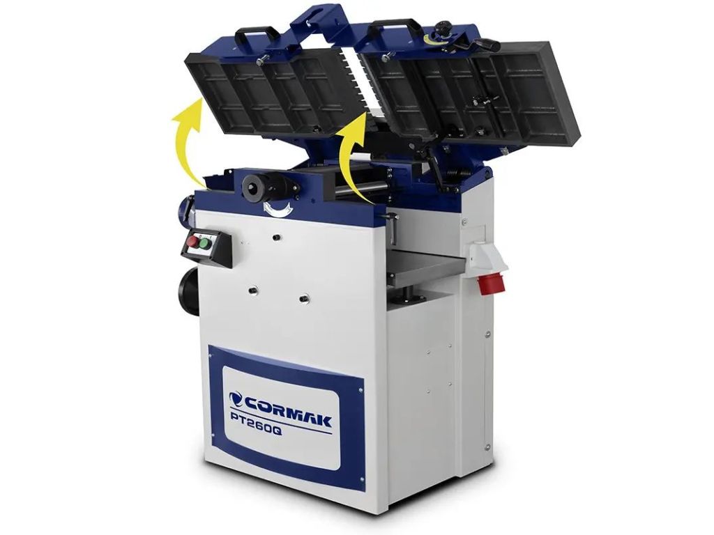 Фугувально-рейсмусовий верстат CORMAK PT260Q 400V - це комбіноване обладнання для вирівнювання поверхонь і калібрування деревини, ширина обробки якого становить 250 мм. Жорстка чавунна конструкція у поєднанні з трифазним асинхронним двигуном потужністю 2,2 кВт/ 2,6 кВт гарантують високу точність обробки та ефективну роботу з твердими породами дерева. 3-ножовий стругальний вал діаметром 75 мм обертається зі швидкістю 4000 об/хв, забезпечуючи гладкість обробленої поверхні.
