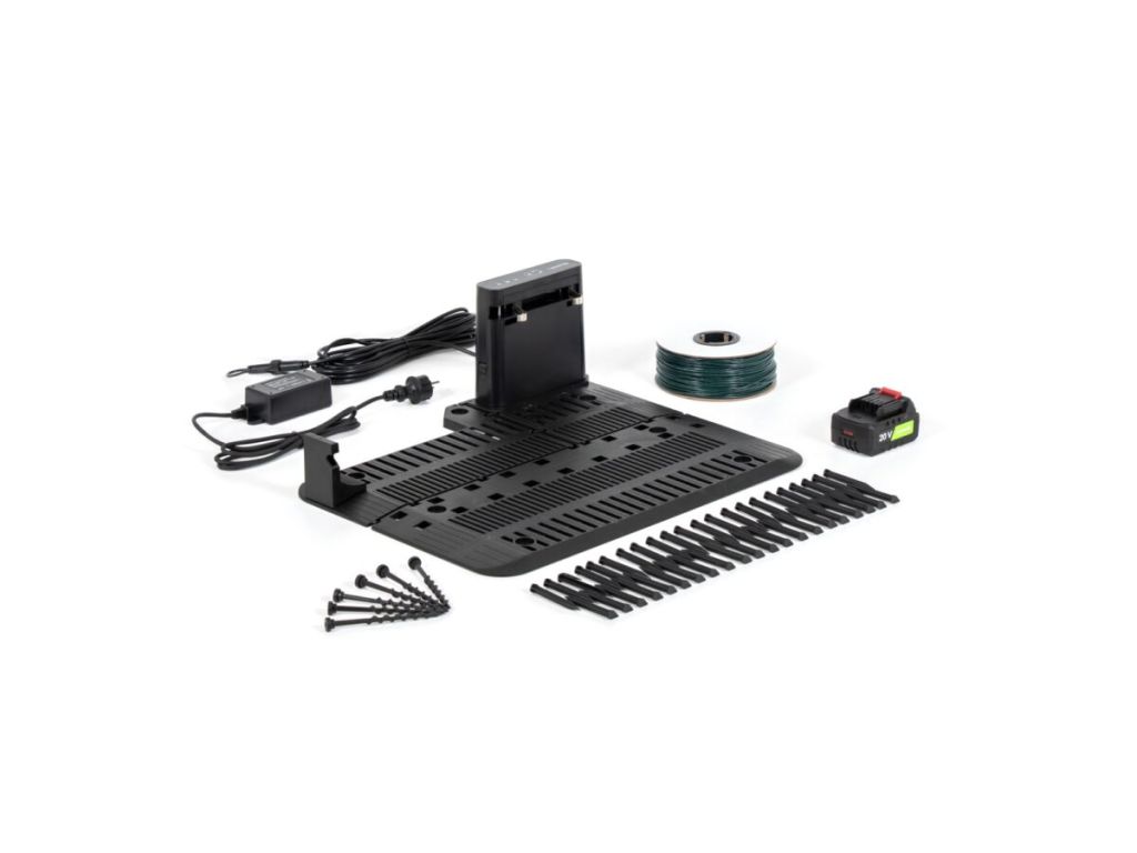 Оснащений безщітковим двигуном і літій-іонним акумулятором ємністю 4Ач, що дозволяє обробляти площі до 900 м². 3 обертові косильні ножі якісно та швидко справляються з косінням. Ширина зрізу становить 18 см, висота зрізу плавно регулюється від 20 до 60 см. Зарядка робота здійснюється через док-станцію. Через додаток можна запрограмувати робот на самозарядку. Ще цей робот газонокосарка має спіральний і прямий режими роботи та систему кромки, завдяки яким газон обробляється рівномірно.