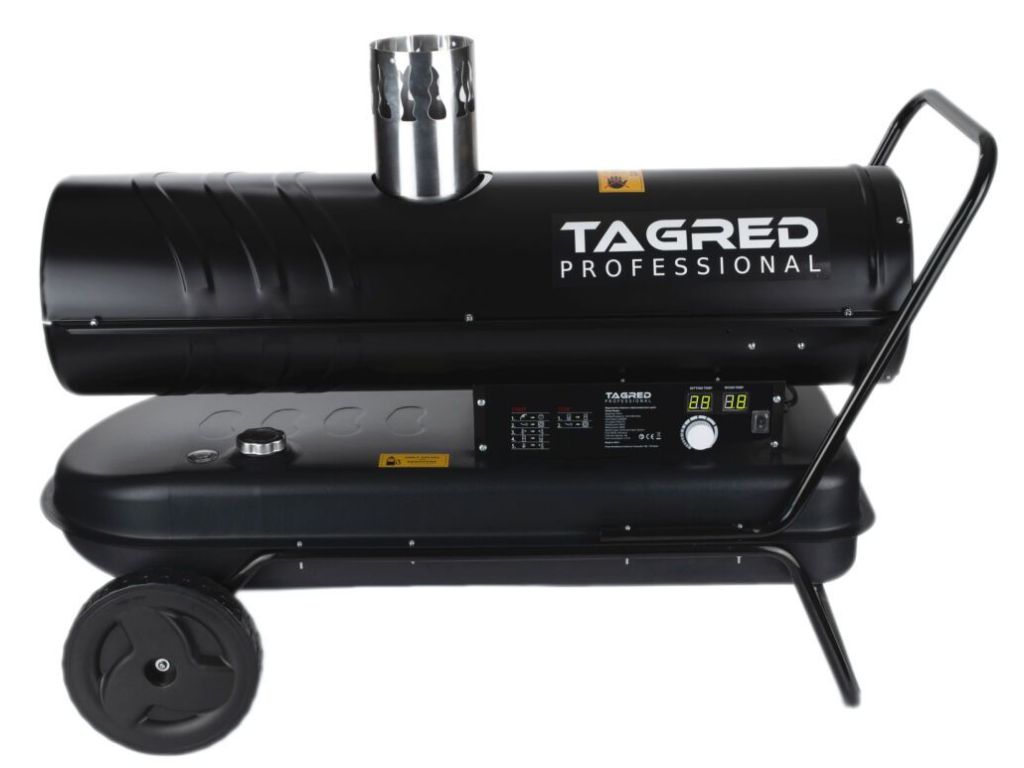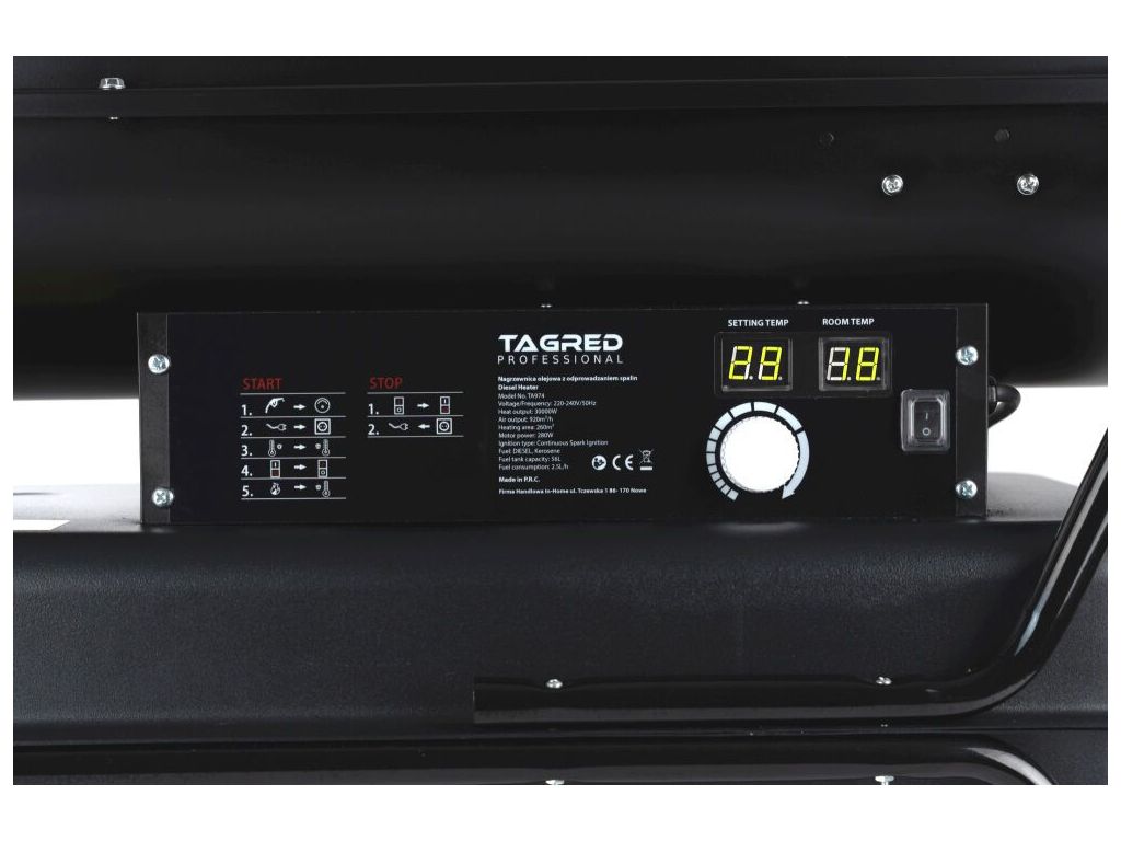 Дизельна теплова гармата TAGRED TA974 - прилад, призначений для обігріву складських, виробничих і підсобних приміщень. Обігрівач працює на дизельному пальному. Пристрій має численні засоби захисту, включаючи захист від перегріву та витоку пального . Встановлений LCD дисплей.