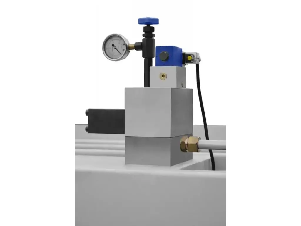 - Жорстка суцільнозварна конструкція забезпечує високу надійність верстата при роботі. Встановлена надійна гідравлічна система, яка включає блок клапанів тиску, блок клапанів синхронізації, блок клапанів подачі Bosch-Rexroth (Німеччина), масляний насос SUNNY (Японія);