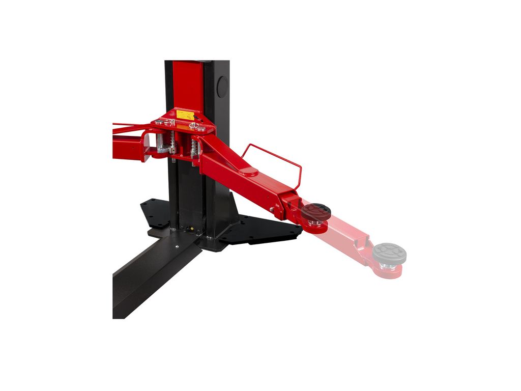 Симетричні телескопічні лапи з розмахом 800-1220 мм забезпечують надійне підхоплення автомобілів з широкою і довгою конструкцією та рівномірний розподіл навантаження. Максимальна ширина транспортного засобу становить 2616 мм. Діапазон підйому - 110-1910 мм, швидкість підйому - 45 с, опускання - 25 с. Блокування і розблокування запобіжних замків здійснюється вручну. Ефективні системи безпеки (захисні кожухи тросів, кінцевий вимикач, запобіжний клапан, кнопка аварійної зупинки) роблять цей професійний підйомник для СТО надійним і безвідмовним.