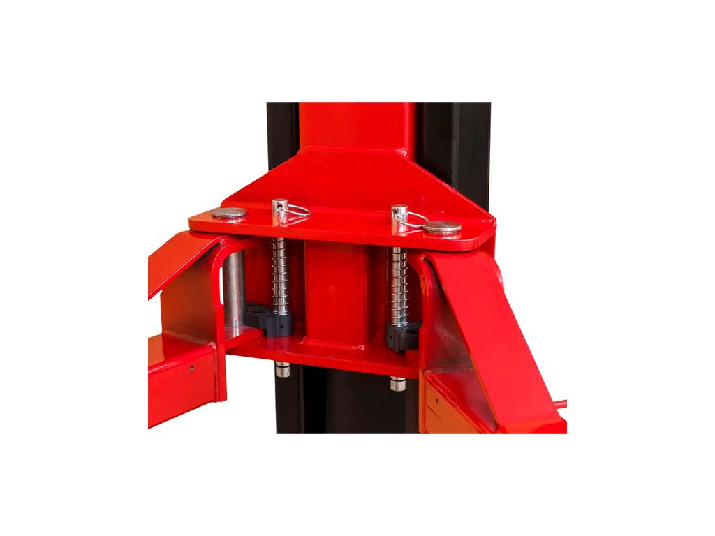 Підйом вантажу плавний і контрольований за рахунок ефективної гідравлічної системи. Розблокування захисних стопорів відбувається за допомогою електромагнітів, керованих кнопкою на панелі, що забезпечує зручність експлуатації і зменшує навантаження на оператора. Асиметрична конструкція полегшує доступ до дверей та салону авто. Гумові накладки на лапах захищають автомобіль від пошкоджень, а система вирівнювання запобігає перекосу платформи при підйомі. Такий двоколонний підйомник з телескопічними лапами буде ідеальним рішенням для професійних автосервісів, які працюють з різними типами транспортних засобів.