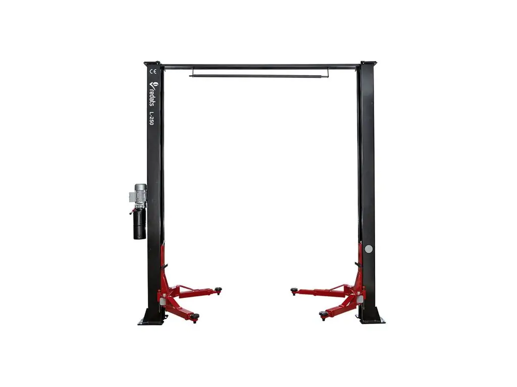 Напівавтоматичний двоколонний підйомник REDATS L-250 з верхньою балкою та вантажопідйомністю 4 тонни розроблений для для професійного використання в автосервісах і шиномонтажах. Відмінно підходить для обслуговування як легкових автомобілів, так і мікроавтобусів та легкої комерційної техніки. Максимальна ширина автомобіля становить 2576 мм. Висота підйому 1800 мм дає повний доступ до днища автомобіля і дозволяє зручно працювати, стоячи під транспортним засобом. Ручне розблокування запобіжних стопорів підвищує надійність конструкції і спрощує її обслуговування.