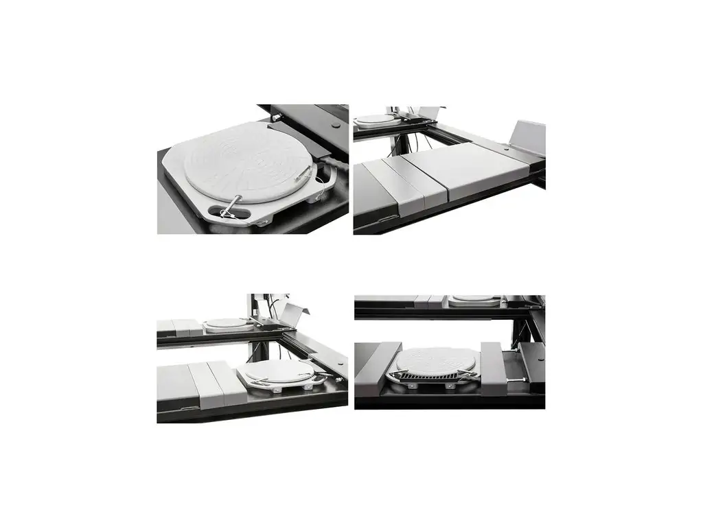 - Задні рухомі пластини - довгі секції платформ під задніми колесами, які можуть вільно зміщуватися у поперечному напрямку. Необхідні для зняття напруги в елементах підвіски та правильного вимірювання кутів задньої осі.
