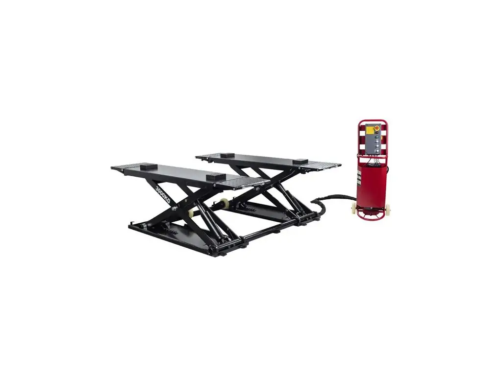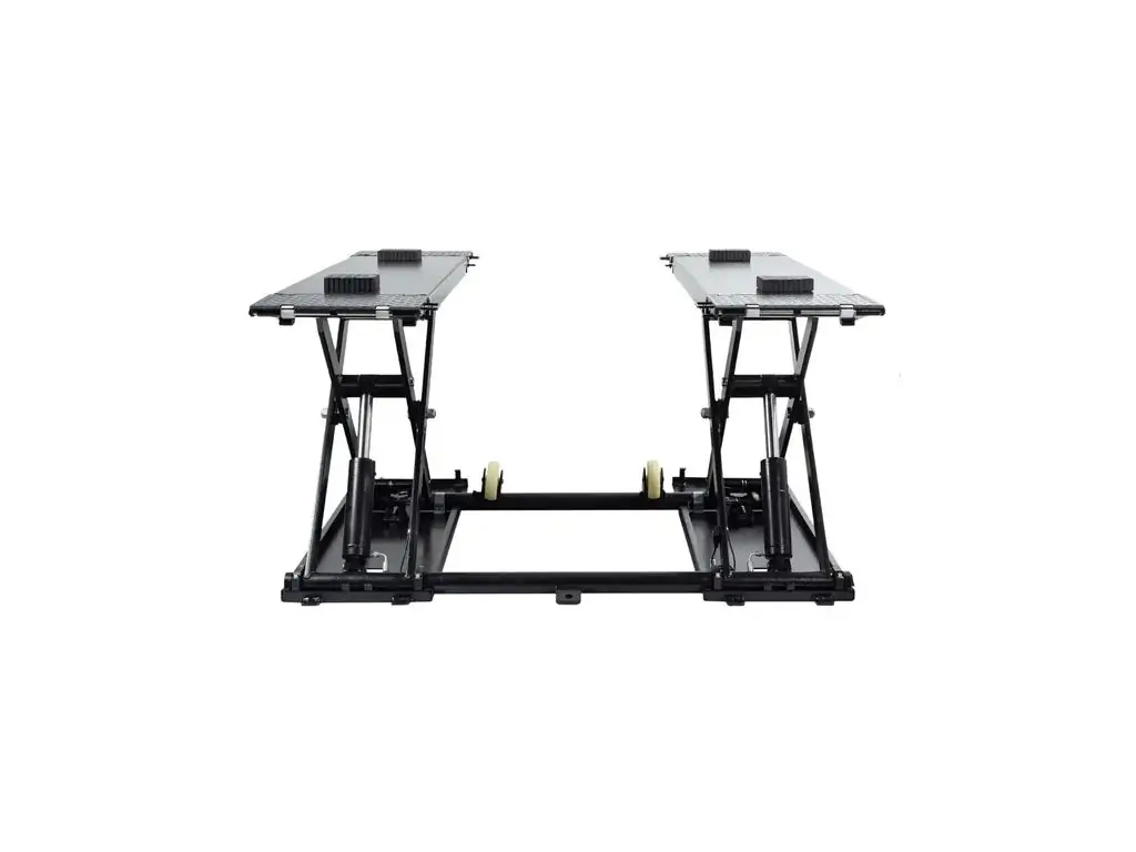 Потужна гідравлічна система забезпечує плавність та контрольованість підйому/опускання, а розкладні рифлені пандуси - легкий заїзд автомобіля на платформу. Довжина платформи без пандусів становить 1480 мм, з пандусами - 2080 мм, тому можна зручно обслуговувати різні типи авто. Окрема панель керування з кнопками для перемикання режимів робить цей мобільний ножичний підйомник зручним і легким в експлуатації.