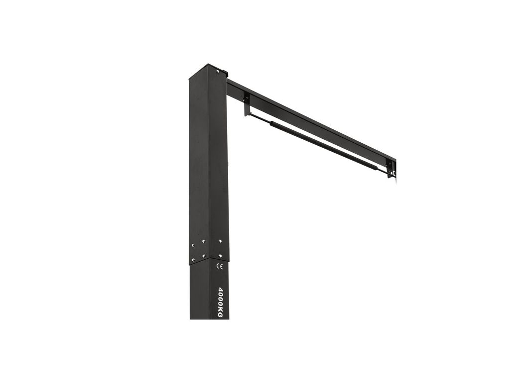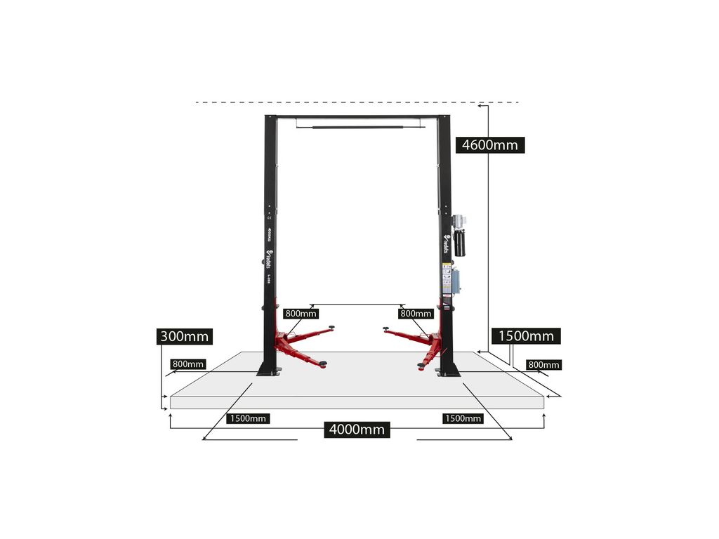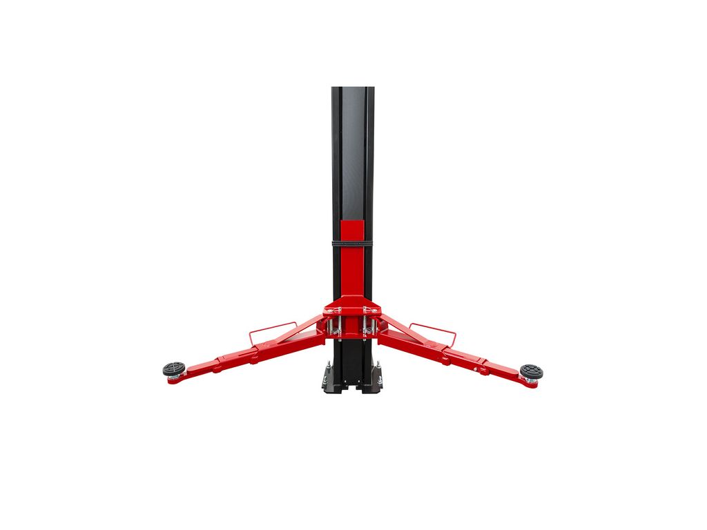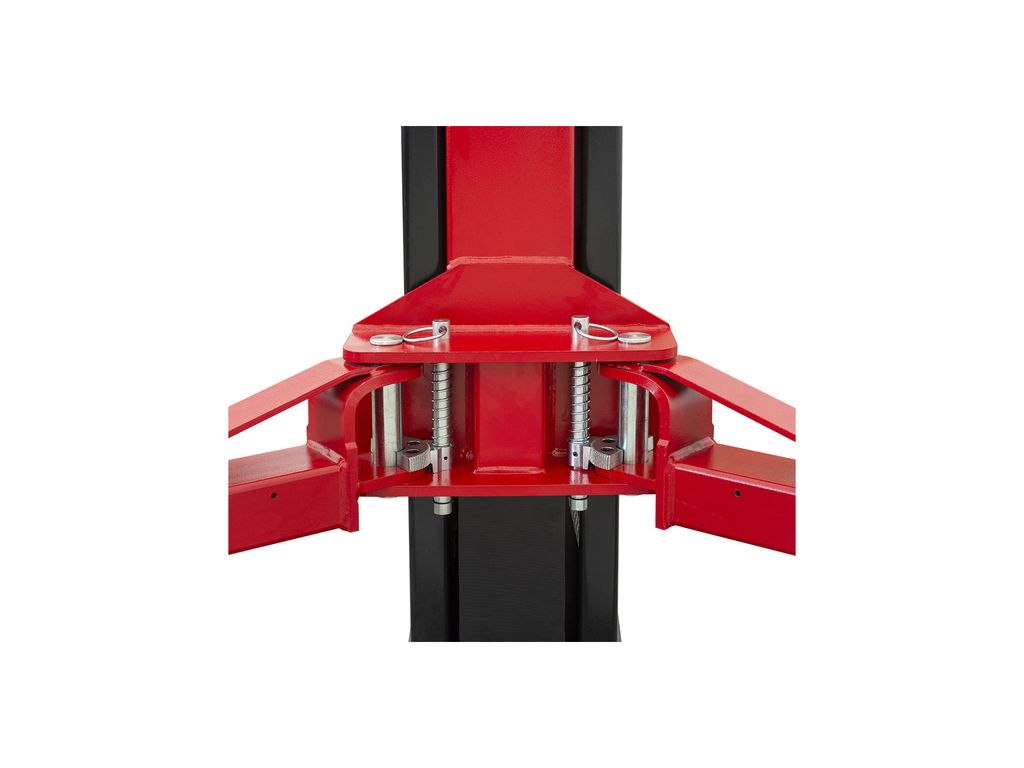 Телескопічні, асиметричні лапи з розмахом 700-1330 мм дозволяють зручно підхоплювати різні за довжиною автомобілі та полегшують відкривання дверей. При максимальному піднятті лап на висоту 1945 мм просвіт між лапами та верхньою балкою складає 2405 мм, що дозволяє використовувати цей підйомник для високих автомобілів. Відсутність нижньої балки між колонами дає змогу вільно переміщувати інструментальні візки, підкатні домкрати та інше обладнання по всій робочій зоні. Автоматичне розблокування запобіжних замків економить час і зменшує навантаження на оператора. Через особливості конструкції цей підйомник 4 тонни з верхньою балкою потребує значної висоти стелі у приміщенні та надійного бетонного фундаменту товщиною не менше 30 см.