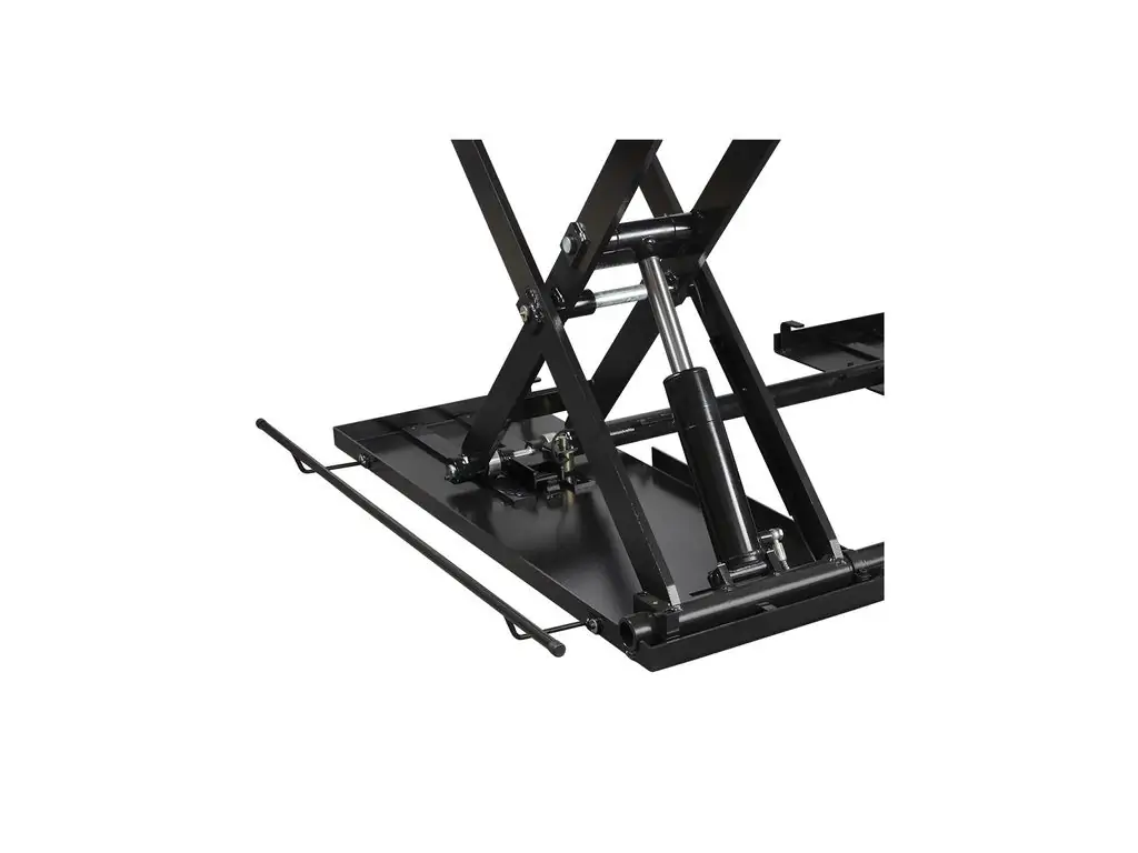 Висота підйому обмежена геометрією ножичного механізму. А так як ножичні підйомники зазвичай використовуються для роботи з колесами, підвіскою і днищем, повна висота підйому не потрібна. Менша висота підйому робить конструкцію стійкішою, жорсткішою і компактнішою.