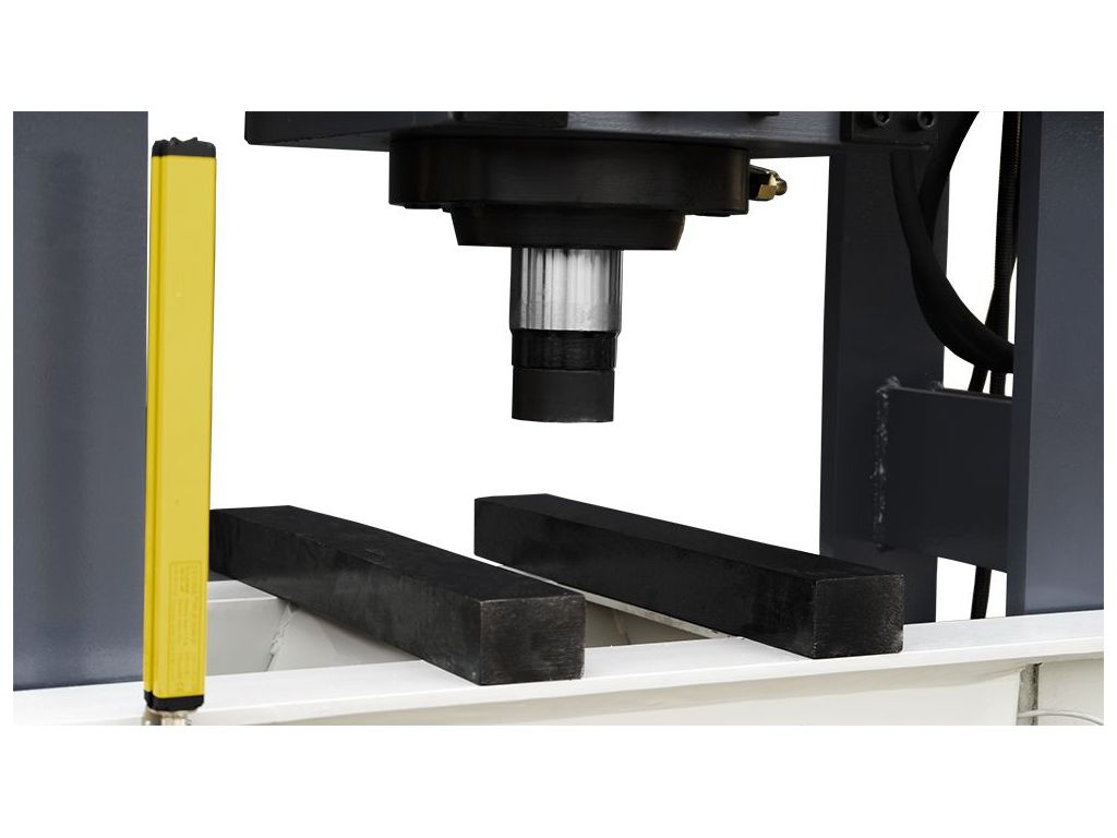 - Системи безпеки: Прес обладнаний світловою завісою безпеки типу 4, яка створює світловий бар'єр для захисту оператора та мінімізації ризиків нещасних випадків. Ця система відповідає найвищим стандартам безпеки.