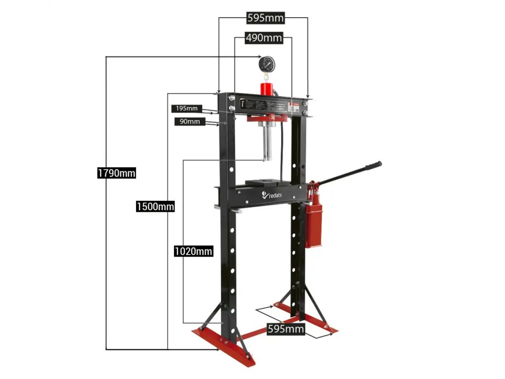 Прес гідравлічний з подвійним насосом 20 т REDATS H-370 - це ефективне обладнання для автосервісів, ремонтних і монтажних майстерень, яке дозволяє швидко і якісно виконувати пресування, формування, штампування, згинання та рихтування металевих конструкцій. Досягає сили тиску 20 тонн. Опорний стіл можна встановити у 8 положень у діапазоні від 0 до 1020 мм, що дає змогу адаптувати прес до різних завдань.