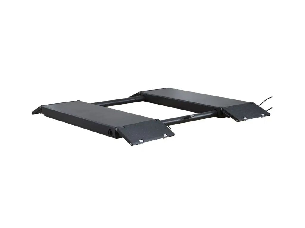 Гідравлічний механізм забезпечує плавне та контрольоване підняття вантажу. Час підйому/опускання становить 35 с. Пандуси з рифленою поверхнею полегшують заїзд автомобіля на платформи. Довжина платформ без пандусів - 1480 мм, з пандусами - 2080 мм. Цей компактний автомобільний підйомник у складеному стані займає мало місця і оснащений колесами, що робить його зручним для зберігання і переміщення.