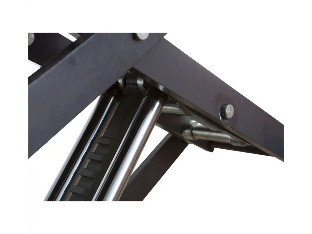 Для полегшення заїзду автомобіля на платформу є рифлені пандуси шириною 635 мм. Довжина платформи без пандуса - 1450 мм, з пандусом - 2050 мм. В комплект поставки входять 4 гумові накладки для захисту порогів авто і запобігання його зміщенню при підйомі. Цей ножичний підйомник має просту панель управління з 3 кнопками (підйом, опускання, фіксація у вибраному положенні), тому працювати з ним дуже зручно.