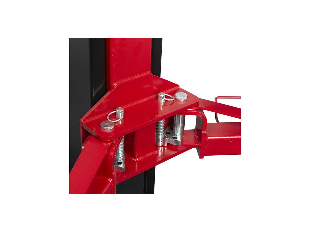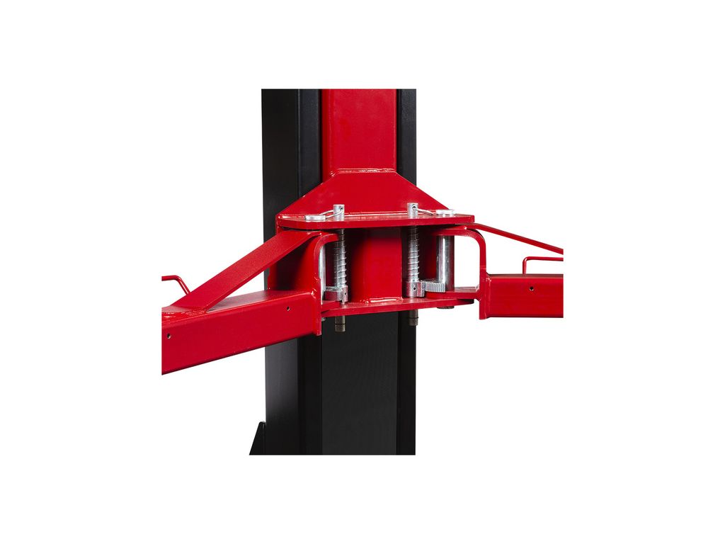 Підйомник оснащений симетричними телескопічними лапами з розмахом 700-1345 мм, які забезпечують рівномірний розподіл ваги і зручність роботи з довгими автомобілями. Мінімальна висота лап 90 мм дає змогу обслуговувати автомобілі з низьким кліренсом. Автоматичне розблокування запобіжних замків пришвидшує роботу, економлячи час і зусилля оператора. Цей автоматичний підйомник на 230 В має вагу 610 кг і потребує бетонної заливки товщиною не менше 30 см.