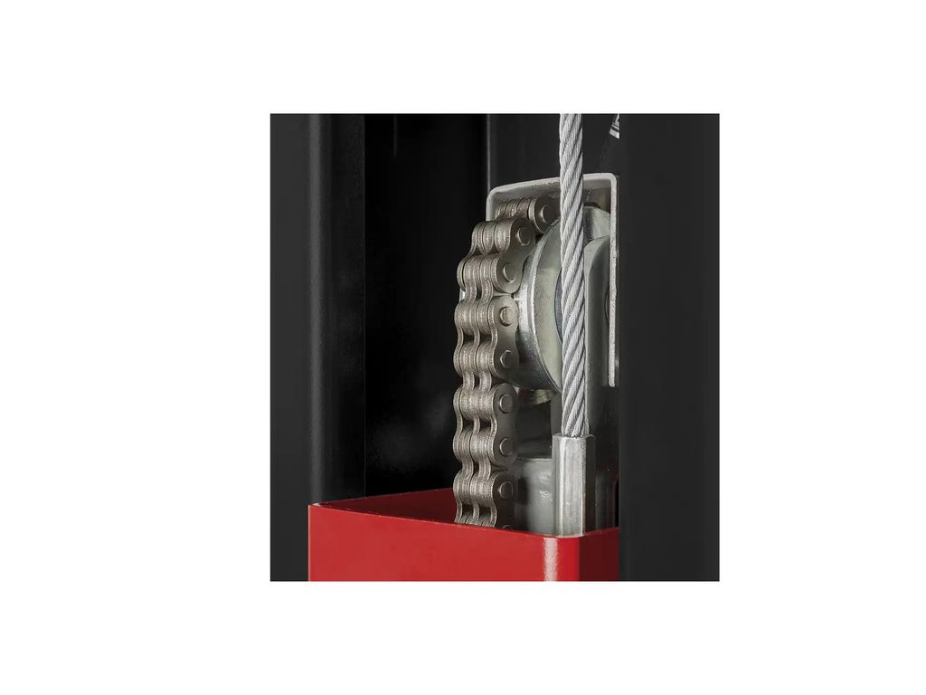 Підйомник оснащений електродвигуном потужністю 2,2 кВт з живленням від трифазної мережі та ефективною гідравлічною системою. Розблокування запобіжних замків здійснюється вручну. Цей напівавтоматичний підйомник 4 тонни оснащений спеціальними захисними кожухами, які закривають троси всередині колон, захищаючи їх від бруду та пошкоджень, та кінцевим вимикачем, що забезпечує довговічність та безпечність експлуатації.