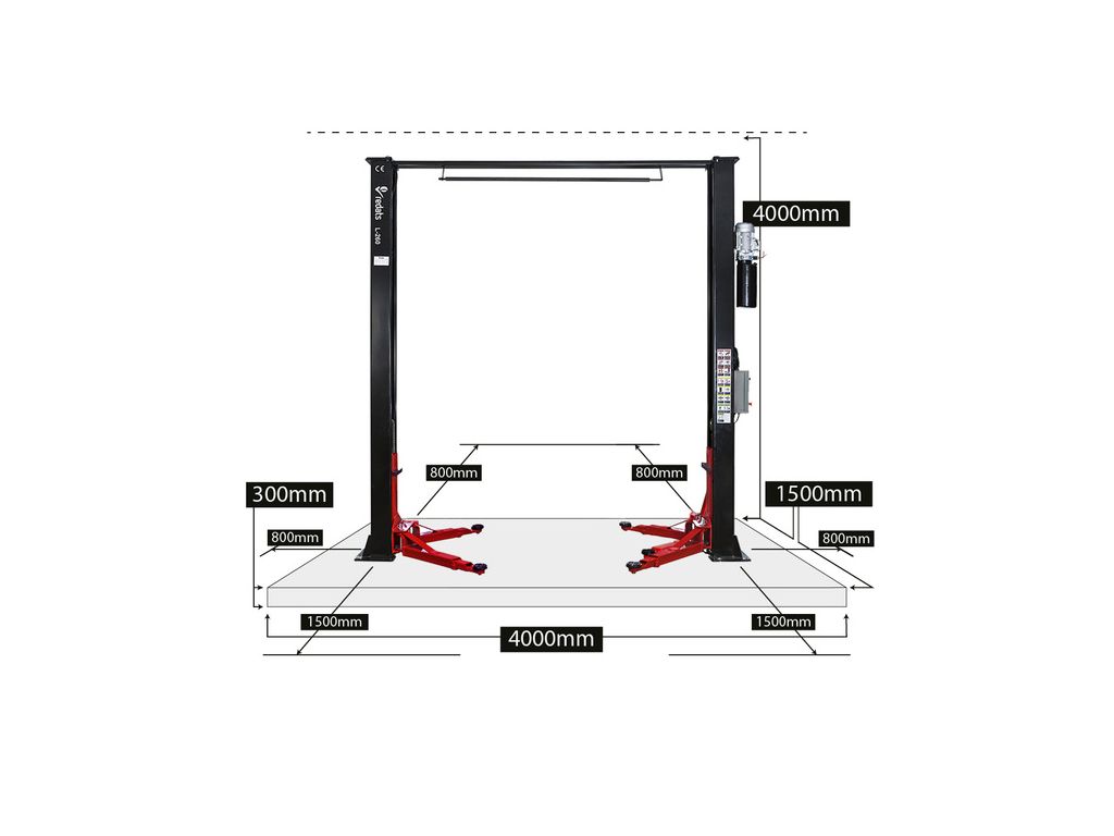 Автоматичний двоколонний підйомник REDATS L-260 з верхньою синхронізацією та автоматичним розблокуванням запобіжних замків буде вигідним рішенням для професійних автосервісів, яким важлива швидкість роботи та відсутність перешкод між колонами. Вантажопідйомність 4 тонни дозволяє обслуговувати широкий спектр транспортних засобів (легкові автомобілі, мікроавтобуси, легка комерційна техніка і подібні). Діапазон підйому 100-1960 мм дає змогу працювати з низькими автомобілями і повний доступ до днища транспортного засобу. Швидкість підйому - близько 50 с.